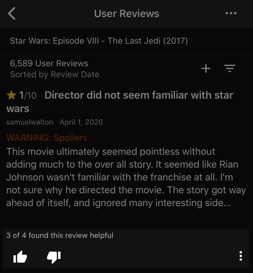 Likewise, to find a review helpful doesn't mean that you agree with it. A well-thought analysis of a film can still be helpful and shape your opinion differently or bring a novel point of view to light, even if you ultimately disagree with the reviewer's conclusions.